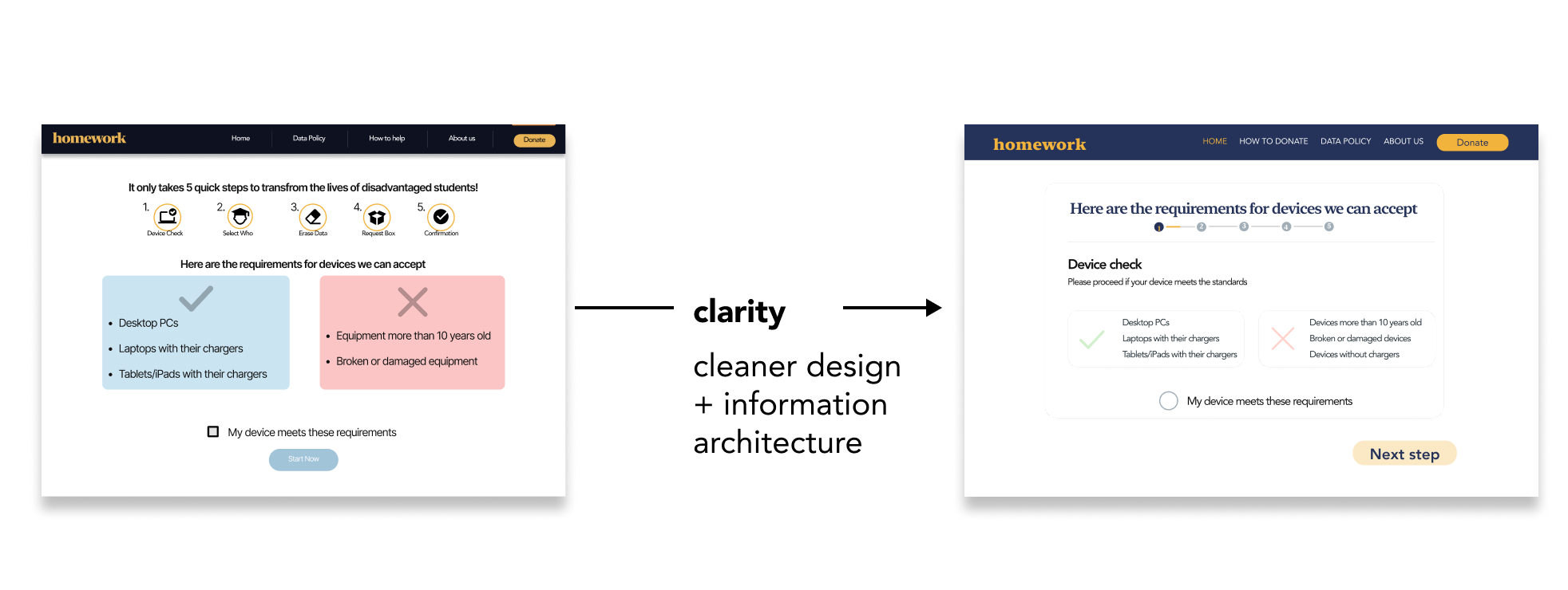 Redesigning a donation process for Homework, a charity addressing digital poverty among students.